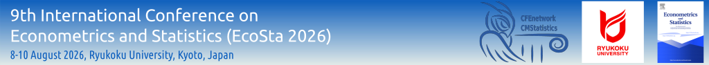 The 9th International Conference on Econometrics and Statistics (EcoSta 2026) will be hosted by Ryukoku University, Kyoto, Japan, 8-10, August 2026. A tutorial will be given on the 7th of August, 2026.